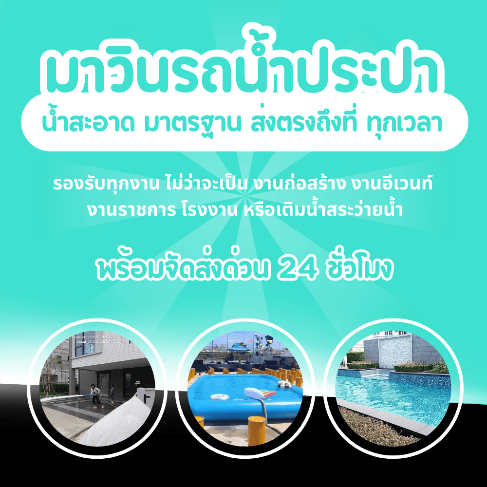 รับจัดส่งน้ำประปาสะอาด สำหรับงานอีเวนท์ กองถ่าย งานก่อสร้าง และเติมน้ำสระว่ายน้ำ